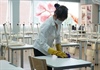 Các trường học khử khuẩn lớp học để phòng dịch bệnh từ virus corona. Ảnh: V.NGỌC