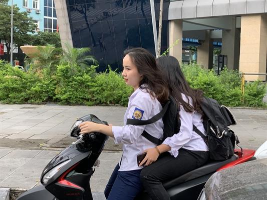 Hà Nội: Trở lại trường sau thời gian nghỉ dịch, nhiều học sinh không đeo khẩu trang và không đội mũ bảo hiểm