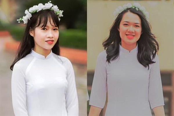Đôi bạn cùng lớp thủ khoa Hà Phương (bên trái) và Quỳnh Trang (bên phải). Ảnh: FBNV