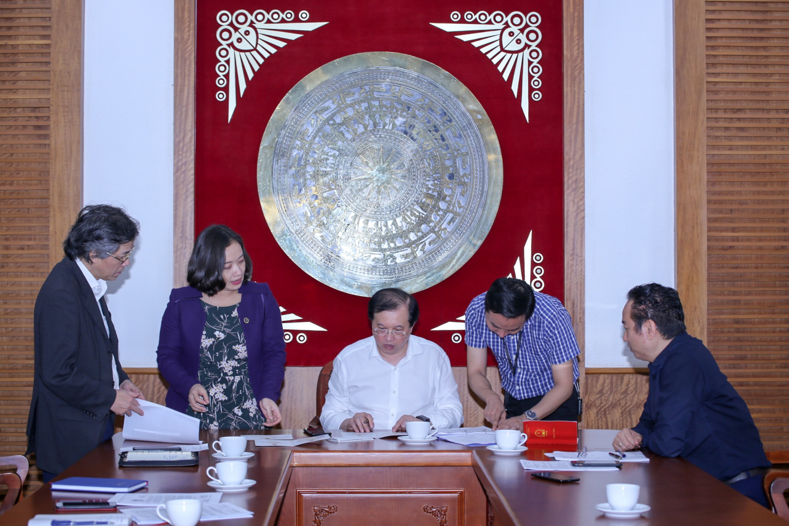 Thứ trưởng Bộ VHTTDL Tạ Quang Đông xem xét các mẫu thiết kế phôi bằng, bằng tốt nghiệp trung cấp chuyên nghiệp