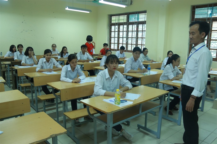 Thi sinh làm bài thi môn Ngữ văn tại Hội đồng thi THPT Lương Thế Vinh Hà Nội. Ảnh Thanh Hùng