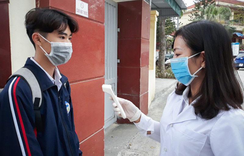 Học sinh tại Quảng Ninh được đo thân nhiệt ngay từ cổng trường khi đi học trở lại