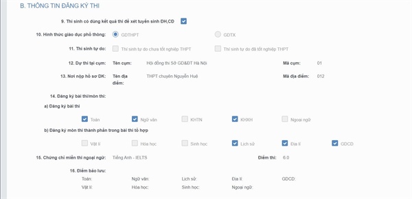 Các thí sinh đã hoàn thành việc đăng ký dự thi