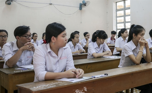 Học sinh lớp 12 thi học kỳ môn văn sáng ngày 29.12.2017