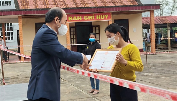 Chủ tịch UBND huyện Tuyên Hóa đến thăm và khen thưởng cô giáo dạy học tại khu cách ly tập trung