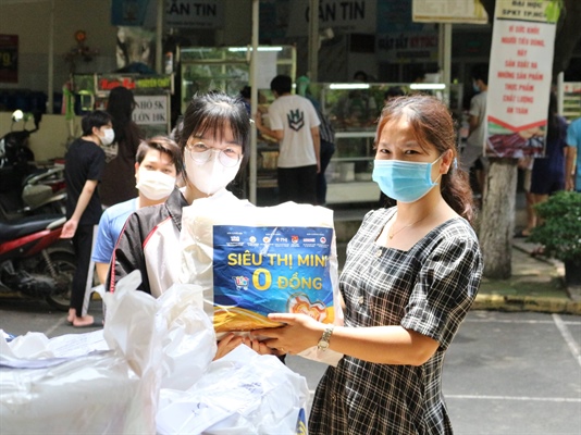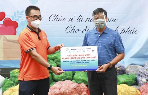 Sinh viên ĐH Sư phạm Kỹ thuật TP.HCM được hỗ trợ về lương thực, nhu yếu phẩm. Ảnh: Công Đức