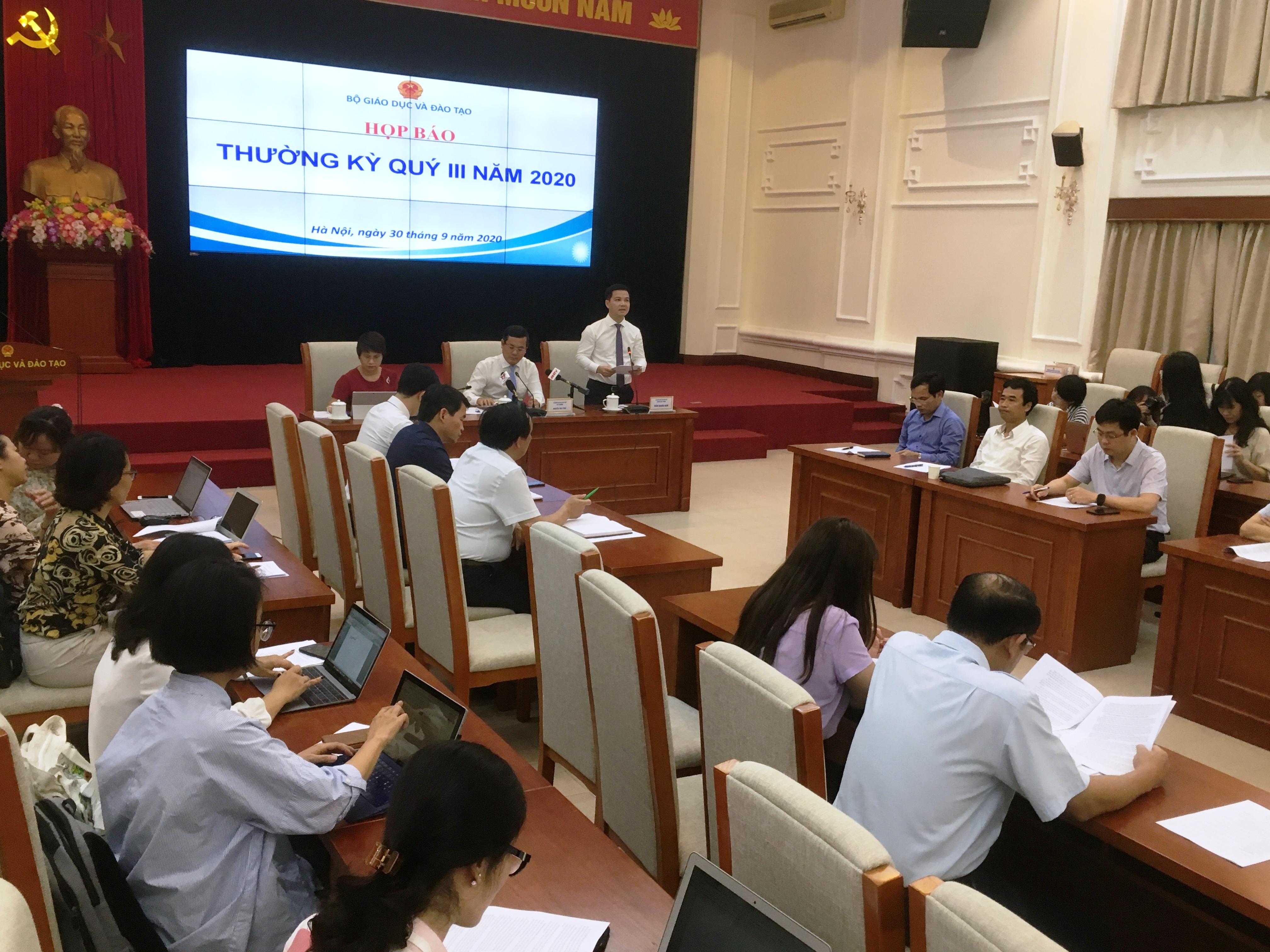 Quang cảnh cuộc họp báo thường kỳ quý III năm 2020 của Bộ GD&ĐT