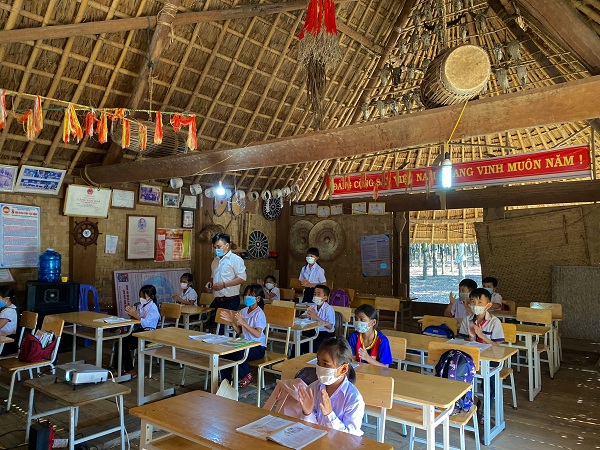 Tổ chức dạy học theo nhóm ở nhà rông văn hóa, hoặc mượn nhà dân với phương châm “ở đâu học ở đó”