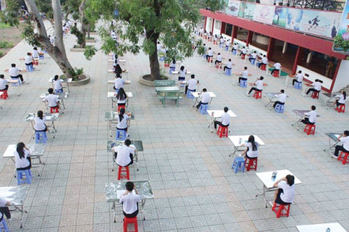 Điểm đặc biệt là học sinh khối 11 của trường tập trung giữa sân trường và làm bài kiểm tra như... thi hương, thi hội, thi đình ngày xưa.
