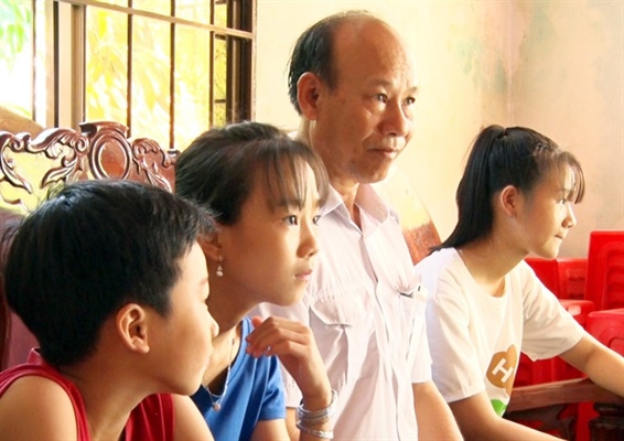 Ông Dạ cùng các cháu của mình tìm hiểu kiến thức