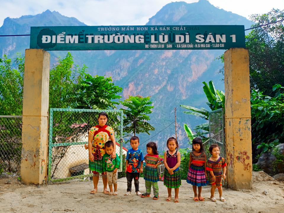 Điểm trường Lù Dì Sán 1 nằm bên đường lên đỉnh núi cao chót vót mà đứng ở đó chỉ đưa tay ra là với được mây, chụm chân đứng thẳng là đầu chạm tới trời! Trước mặt là con sông Chảy ngăn đôi biên giới Việt - Trung, còn xung quanh thì sừng sững những vách núi cao và gần ngay cột mốc 172 hiên ngang giữ đất. Điểm trường có duy nhất một lớp học của 25 đứa trẻ từ 3-5 tuổi, là con em đồng bào người Mông. Đây là năm thứ 3 thầy giáo Giàng Seo Cù sinh năm 1992, quê ở huyện Bắc Hà, phụ trách lớp học chon von trên vách đá ấy, một tay thầy làm tất, nhận mặt con chữ, hát, múa, đọc thơ cho đến... đổ bô hằng ngày. Ai cũng bảo, thầy Cù có gương mặt đẹp như hoa pằng tớ dày, sống mũi cao như thân cây ngô mọc trên đá và giọng nói thì nhẹ nhàng, êm như tiếng suối tìm đường đổ về thác! Có lẽ, chính vì nhiều “lợi thế” như vậy nên chàng trai người Mông mới gắn bó được với nghề trông trẻ.