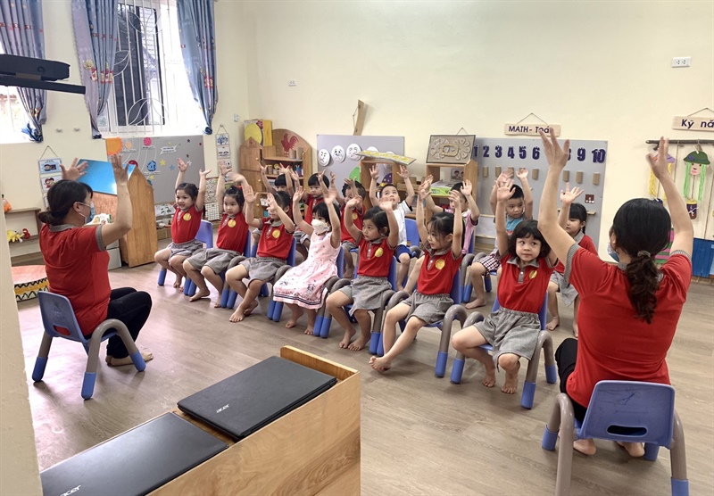 Các con Trường Mầm non số 1 Phương Mai (Đống Đa) bắt đầu buổi học