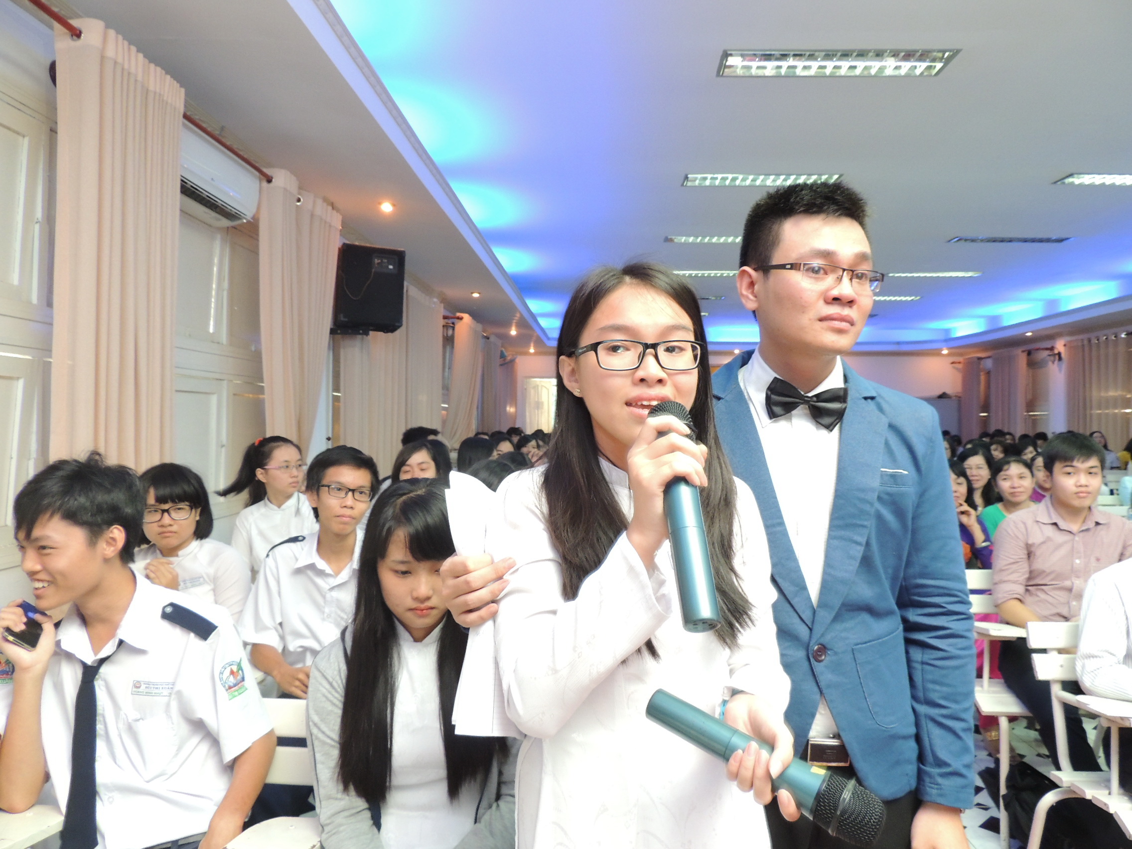 Một nữ sinh xúc động chia sẻ về lòng biết ơn đối với cha mẹ, thầy cô tại một chương trình