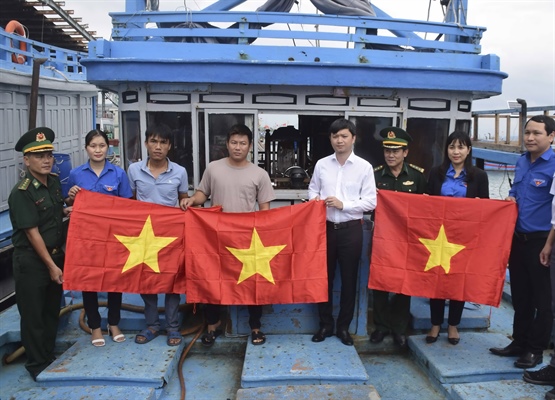 Đại diện Trung ương Đoàn TNCS HCM tặng cờ Tổ quốc cho các ngư dân