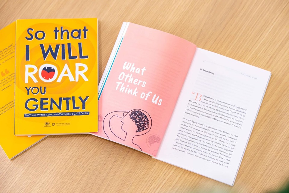 | “So That I Will Roar You Gently” là tuyển tập đầu tay viết bằng Tiếng Anh của nhóm 11 tác giả trẻ, là những em học sinh ở độ tuổi từ 13 – 17 tuổi Trung tâm tư vấn và phát triển tài năng - GATE Center của Vinschool. Cuốn sách gồm 13 mẩu chuyện nhỏ xoay quanh cuộc sống và tâm tư những bạn trẻ đang tuổi cắp sách tới trường về các vấn đề xung quanh, từ trường lớp, gia đình, đến cộng đồng xã hội. Bắt nguồn từ sự thôi thúc giúp học sinh tài năng có cơ hội được khơi dậy sự sáng tạo trong tư duy, và mong muốn các bậc phụ huynh thấu hiểu con em mình hơn, GATE Center của Vinschool đã tạo điều kiện cho các em học sinh thực hiện dự án xuất bản sách quy mô lớn này. Ngày 12/10/2019 vừa qua, tại Phố sách Hà Nội, cuốn sách “So That I Will Roar You Gently” đã chính thức ra mắt công chúng và độc giả cả nước. Toàn bộ doanh thu từ việc bán sách sẽ được sử dụng cho mục đích từ thiện. |