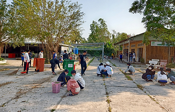 Học sinh Trường THPT An Biên, tỉnh Kiên Giang tổ chức vệ sinh để chuẩn bị trở lại trường ngày 2.3