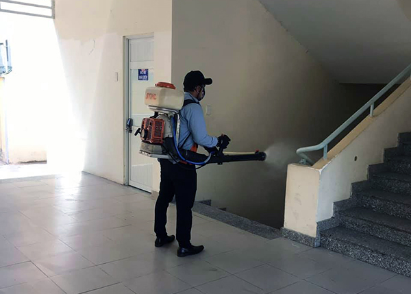 Trung tâm GDTX Chu Văn An, TP.HCM tiến hành phun xịt thuốc khử trùng chuẩn bị cho học viên quay lại học vào tuần sau