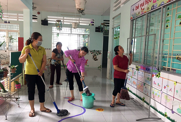 Một trường mầm non tỉnh An Giang tổ chức vệ sinh, khử trùng phòng học