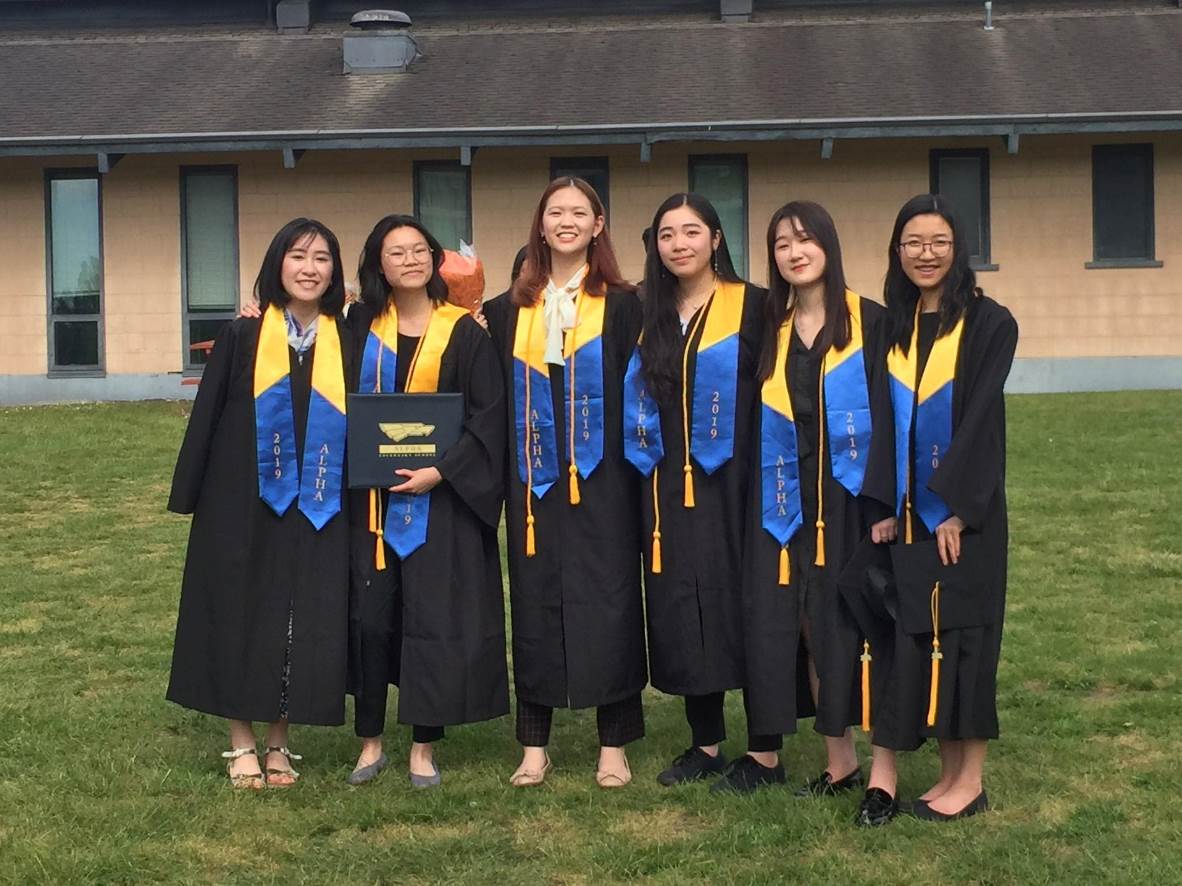 Homi Yamada (ngoài cùng bên phải) trong lễ tốt nghiệp THPT tại trường Alpha secondary school (Canada)