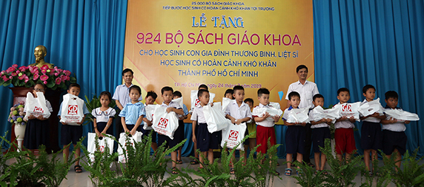 Ông Đỗ Thành Lâm, Giám đốc NXB Giáo dục tại TP.HCM cho biết, trong 40 năm qua, đơn vị đã in và phát hành hơn 2,4 tỉ bản sách giáo dục và ấn phẩm các loại phục vụ giáo viên và học sinh tại các tỉnh, thành phố phía Nam. Mỗi năm đơn vị đã cung ứng 45 triệu bản sách giáo khoa (SGK) và 40 triệu bản sách bổ trợ, sách tham khảo các loại. Các chính sách xã hội về SGK nhằm đảm bảo đủ SGK cho học sinh học tập, đặc biệt là học sinh diện chính sách, khó khăn được duy trì thực hiện hàng năm, trong đó bao gồm tặng SGK cho con thương binh liệt sĩ, học sinh nghèo, vận động học sinh dùng lại SGK cũ,… Tổng số tiền thực hiện các hoạt động xã hội từ năm 2009 đến 2019 là hơn 21,5 tỉ đồng.