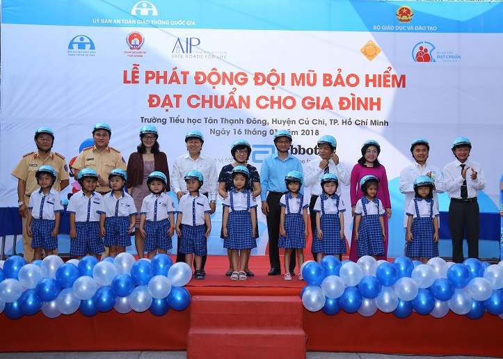 Dự án “Mũ bảo hiểm đạt chuẩn cho gia đình” nhằm nâng cao nhận thức về sử dụng mũ bảo hiểm đạt chuẩn và ATGT đường bộ để thay đổi hành vi của học sinh, phụ huynh và cộng đồng. Từ năm 2013, Abbott đã tài trợ trên 21.700 mũ bảo hiểm đạt chuẩn cho học sinh và giáo viên và thực hiện đổi trên 14.000 mũ bảo hiểm đạt chuẩn cho phụ huynh thông qua chương trình đổi mũ có trợ giá. Theo kế hoạch, trong năm học 2017-2018, dự án tiếp tục trao tặng hơn 4.000 mũ bảo hiểm đạt chuẩn cho các trường dự án thuộc hai huyện ngoại thành của TP.HCM là Củ Chi và Hóc Môn.