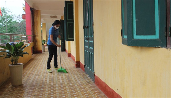 Trong lúc học sinh nghỉ học, các thầy cô giáo Yên Bái vẫn tới trường để vệ sinh trường, lớp học và làm nhiệm vụ việc chuyên môn khác