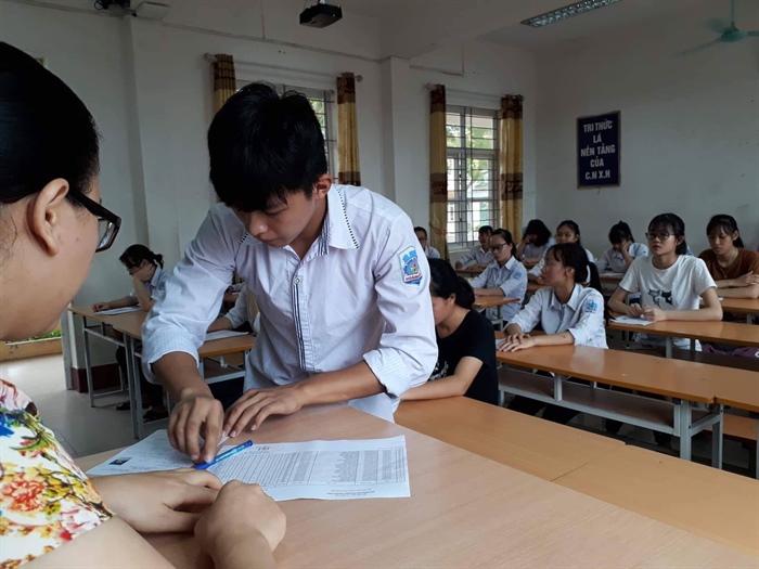 Thí sinh làm thủ tục để dự thi môn thi Ngữ văn