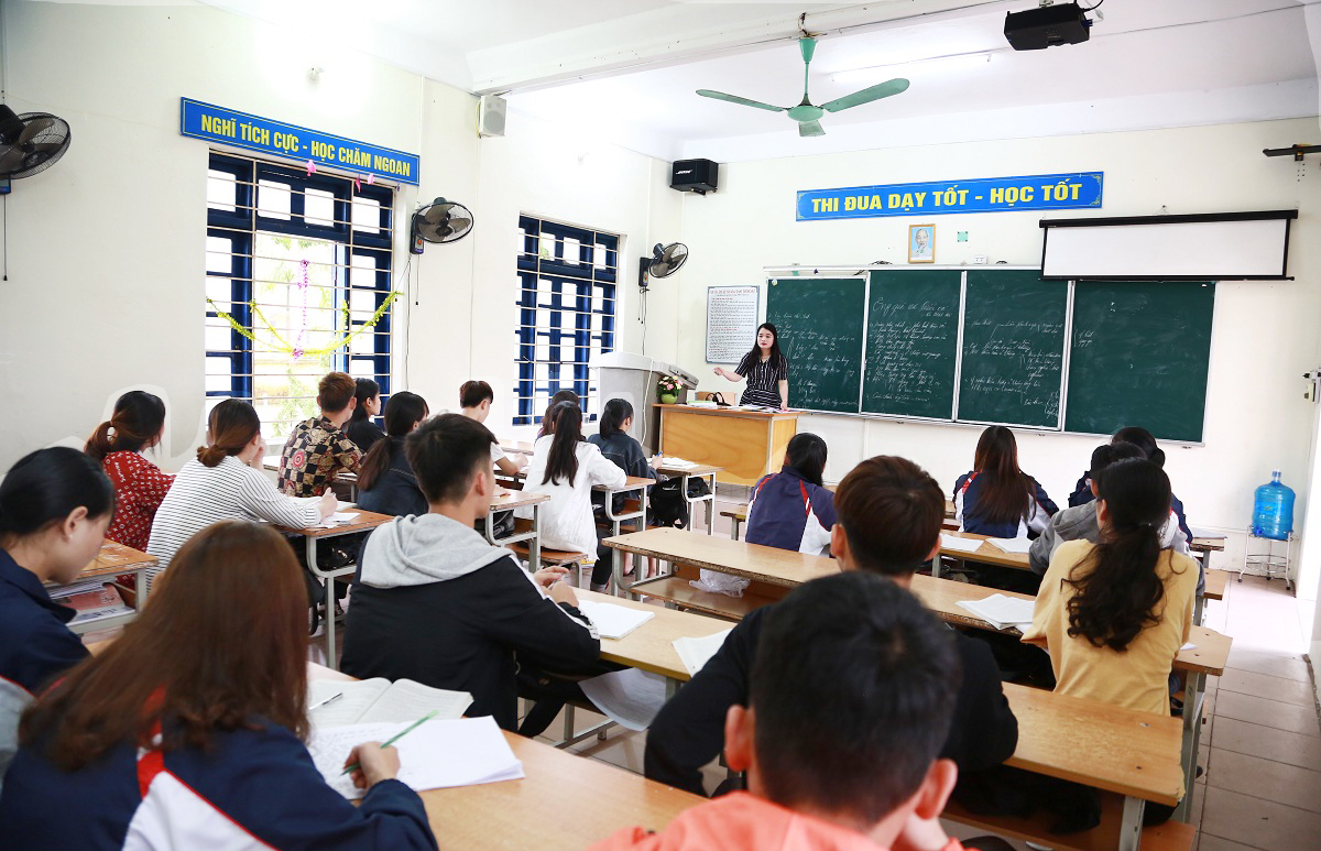 Các học sinh đến lớp, ổn định việc học tập