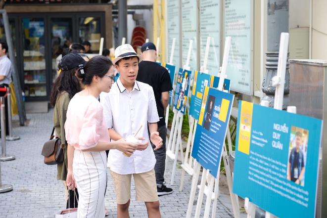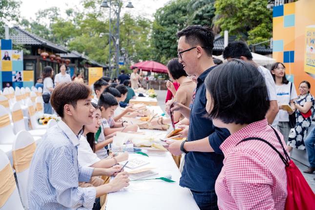 Độc giả hào hứng với những cuốn sách mới mua tại lễ ra mắt sách. Toàn bộ số tiền bán sách sẽ được sử dụng cho mục đích từ thiện