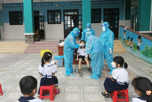 Tổ chức xét nghiệm cho học sinh xã đảo Thạnh An, huyện Cần Giờ, TP.HCM chiều ngày 19.10 trước khi các em trở lại trường vào ngày mai 20.10