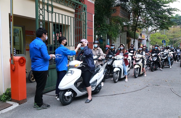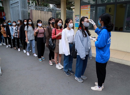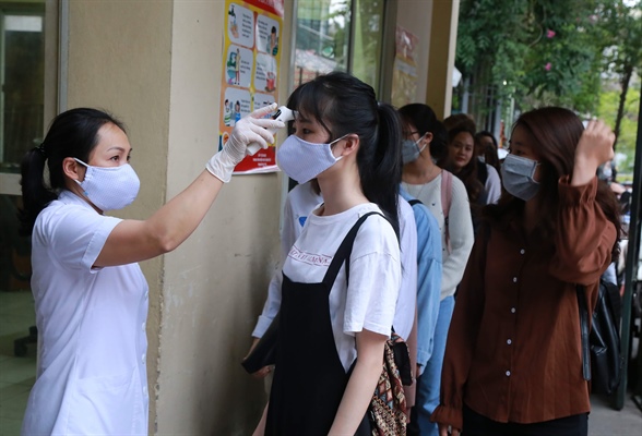 Lực lượng Y tế và Thanh niên tình nguyện được phát nhiệt kế điện tử để đo nhiệt độ cho từng sinh viên và cán bộ tại cổng trường và phát khẩu trang miễn phí. Ngoài ra, các chai dung dịch sát khuẩn cũng được đặt tại các hành lang giảng đường, thuận tiện cho các thầy cô, sinh viên trong việc vệ sinh phòng dịch. Dù tình hình dịch bệnh đang diễn biến phức tạp nhưng mọi công tác phòng, chống dịch Covid -19 đã được các trường Đại học chuẩn bị chu đáo để ứng phó với mọi tình huống có thể xảy ra, nhằm đảm bảo môi trường an toàn và tâm lý thoải mái cho thầy và trò bước vào buổi học đầu tiên sau đợt nghỉ dài vì dịch Covid-19.