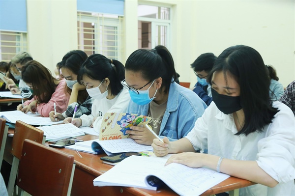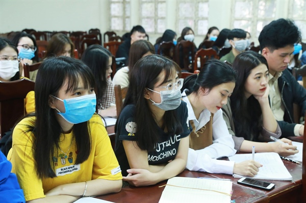 VHO- Sáng nay 2.3, như nhiều tỉnh, thành khác trên cả nước, nhiều trường Đại học đóng bàn trên địa bàn Thủ đô, sinh viên đã đi học trở lại. Tại các trường trong đầu giờ sáng, hệ thống loa phát thanh hướng dẫn cách vệ sinh và đảm bảo an toàn cùng khuyến cáo của Bộ Y tế về phòng, chống dịch Covid-19.