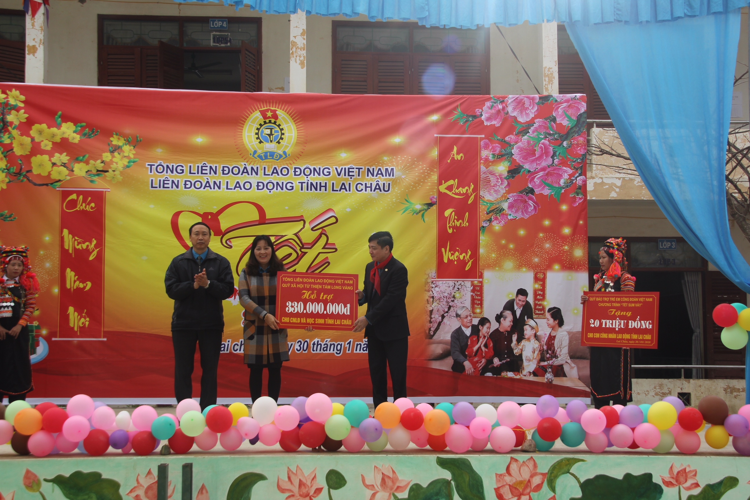 Đoàn công tác do ông Bùi Văn Cường, Chủ tịch Tổng LĐLĐVN đã tới xã Thu Lũm (huyện Mường Tè, Lai Châu) chung vui Tết sum vầy cùng các thầy cô giáo cắm bản nơi đây. Thu Lũm là xã biên giới xa nhất của tỉnh Lai Châu, sinh sống ở đây chủ yếu là người dân tộc Hà Nhì, đời sống đồng bào, cán bộ chiến sĩ còn gặp nhiều khó khăn, thiếu thốn tinh thần và vật chất. Có mặt tại Tết sum vầy, thầy Chang Trung Dũng – Trường PT Dân tộc bán trú THCS Ka Lăng, với hoàn cảnh vợ bị hở van tim, các con còn nhỏ - khi nhận được quà từ tay Chủ tịch Tổng LĐLĐVN Bùi Văn Cường, thầy Dũng đã rưng rưng chia sẻ: “Chúng tôi rất xúc động khi thấy tổ chức Công đoàn đến tận nơi bản xa xôi hẻo lánh, quan tâm chăm lo cho những giáo viên như chúng tôi. Chúng tôi rất cảm kích và đây là động lực để tiếp tục phấn đấu, vượt qua khó khăn để hoàn thành nhiệm vụ”.