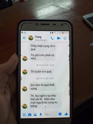 Trước đó, gần 1 tuần nay trên địa bàn tỉnh Thái Bình rộ lên nhiều tin đồn và trên mạng xã hội xuất hiện hình ảnh chụp lại nhiều tin nhắn được cho là của 1 thầy giáo trường PTTH Chuyên Thái Bình nhắn tin gạ tình nữ sinh, khiến cho dư luận rất bức xúc và phẫn nộ. Những tin nhắn được chụp lại khá nhiều, trong một khoảng thời gian cụ thể với những nội dung mùi mẫn, “gợi” tình...Được biết, người đăng bài trên Facebook cá nhân tố cáo thầy giáo gạ tình đã kể lại mình bị nhiều người liên hệ, yêu cầu em gỡ thông tin.
