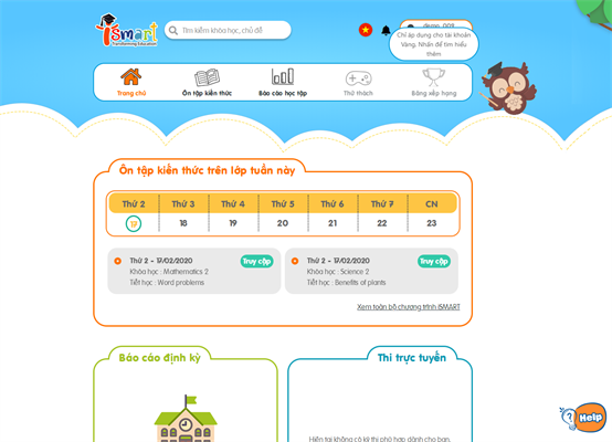 Hệ thống còn có tính năng hiển thị thông báo cho học sinh khi có bài học, bài tập mới hoặc kỳ thi sắp diễn ra. Đồng thời hệ thống iSMART còn có các chủ đề mở rộng nhằm giúp các em nâng cao trình độ so với bài học trong chương trình trên lớp, cũng như các Thử thách hằng ngày, Thử thách hằng tuần để các em thi đua với các bạn học trên hệ thống và có cơ hội ghi tên mình lên Bảng xếp hạng trực tuyến. Bên cạnh đó, quá trình và kết quả ôn tập của các em trên hệ thống còn được ghi nhận bằng Báo cáo học tập thông minh giúp phụ huynh theo dõi và hỗ trợ việc học của con.