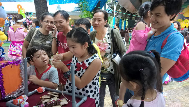 Các em thiếu nhi vui chơi cùng gia đình và… tham gia tranh tài biểu diễn văn hóa văn nghệ.
