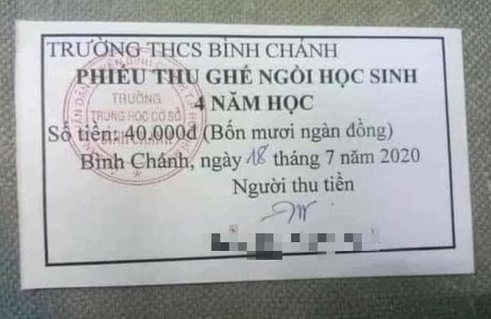 Theo nhà trường, để chuẩn bị năm học 2020-2021 cũng như ngày tựu trường của học sinh, trường có xin ý kiến thường trực Ban đại diện cha mẹ học sinh để xã hội hóa mua ghế nhựa ngồi sinh hoạt dưới cờ cho học sinh khối 6, sử dụng trong 4 năm học với giá 40.000 đồng. Khoản tiền này từ nguồn xã hội hóa nên phụ huynh tự nguyện đóng góp, không bắt buộc và dự kiến trường sẽ gửi lại ghế cho các em sau khi kết thúc niên khóa 2020-2024. Trường đã lồng ghép việc thu tiền khi nhận hồ sơ tuyển sinh đầu cấp trong các ngày từ 18 đến 29.7. Cũng trong báo cáo của trường gửi Phòng GD&ĐT huyện Bình Chánh, khi hình ảnh “Phiếu thu ghế ngồi học sinh trong 4 năm học” lan truyền trên mạng xã hội, ngay lập tức nhà trường đã liên hệ mời 441 phụ huynh đến nhận lại số tiền. Ngày 25.8, trường báo cáo về Phòng Tài chính kế hoạch của huyện là đã hoàn trả cho 239/441 phụ huynh và sẽ tiếp tục gửi dứt điểm số còn lại vào ngày họp phụ huynh đầu năm học. Sau đó, nhà trường đã có cuộc họp với Ban đại diện cha mẹ học sinh và giáo viên chủ nhiệm khối lớp 6. Trong 2 ngày 5.9 và 7.9 vừa qua, nhà trường đã hoàn tất việc trả lại tiền cho hơn 200 phụ huynh còn lại.