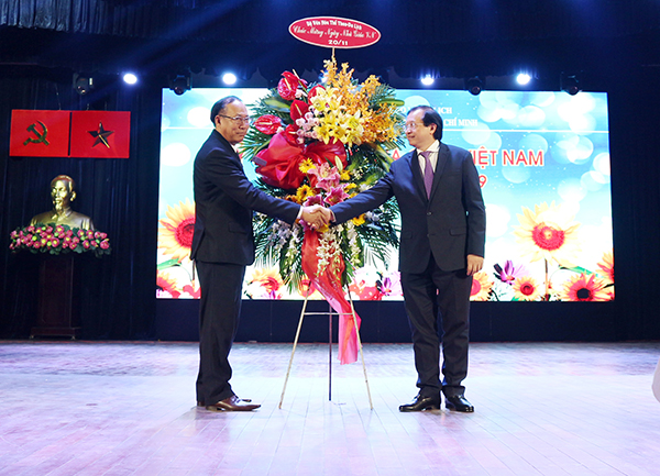 Thứ trưởng Tạ Quang Đông tặng hoa chúc mừng Trường ĐH Văn hóa TP.HCM