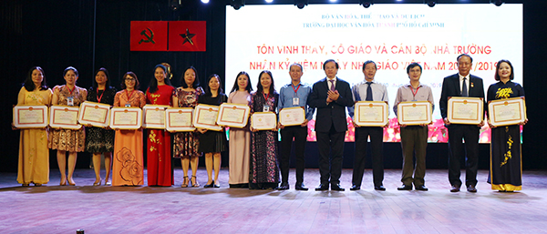 Dịp này, Bộ VHTTDL đã trao Kỷ niệm chương Vì sự nghiệp VHTTDL cho 9 cá nhân; Bộ GD&ĐT trao Kỷ niệm chương Vì sự nghiệp GD&ĐT cho 5 cá nhân. Đồng thời, 4 cá nhân của Nhà trường đã được công nhận danh hiệu Chiến sĩ thi đua cấp Bộ.