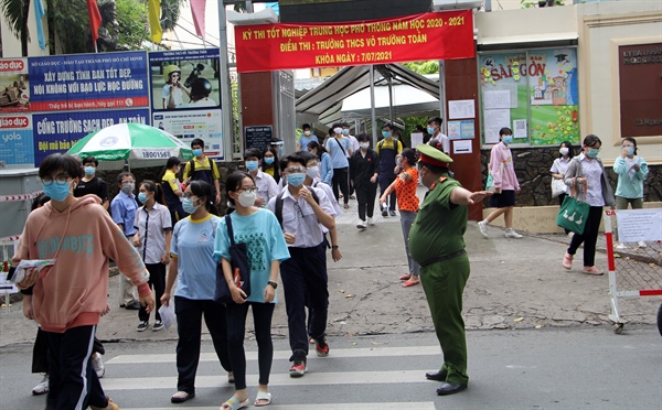 Kỳ thi tốt nghiệp THPT năm 2021 đợt 1 diễn ra vào ngày 7 và 8.7, TP.HCM có khoảng 87.000 thí sinh tham gia trong tổng số trên 89.000 thí sinh. Tất cả thí sinh tham gia dự thi đều đã được xét nghiệm Covid-19 hôm 3.7, chỉ những thí sinh có kết quả âm tính mới được tham gia dự thi.