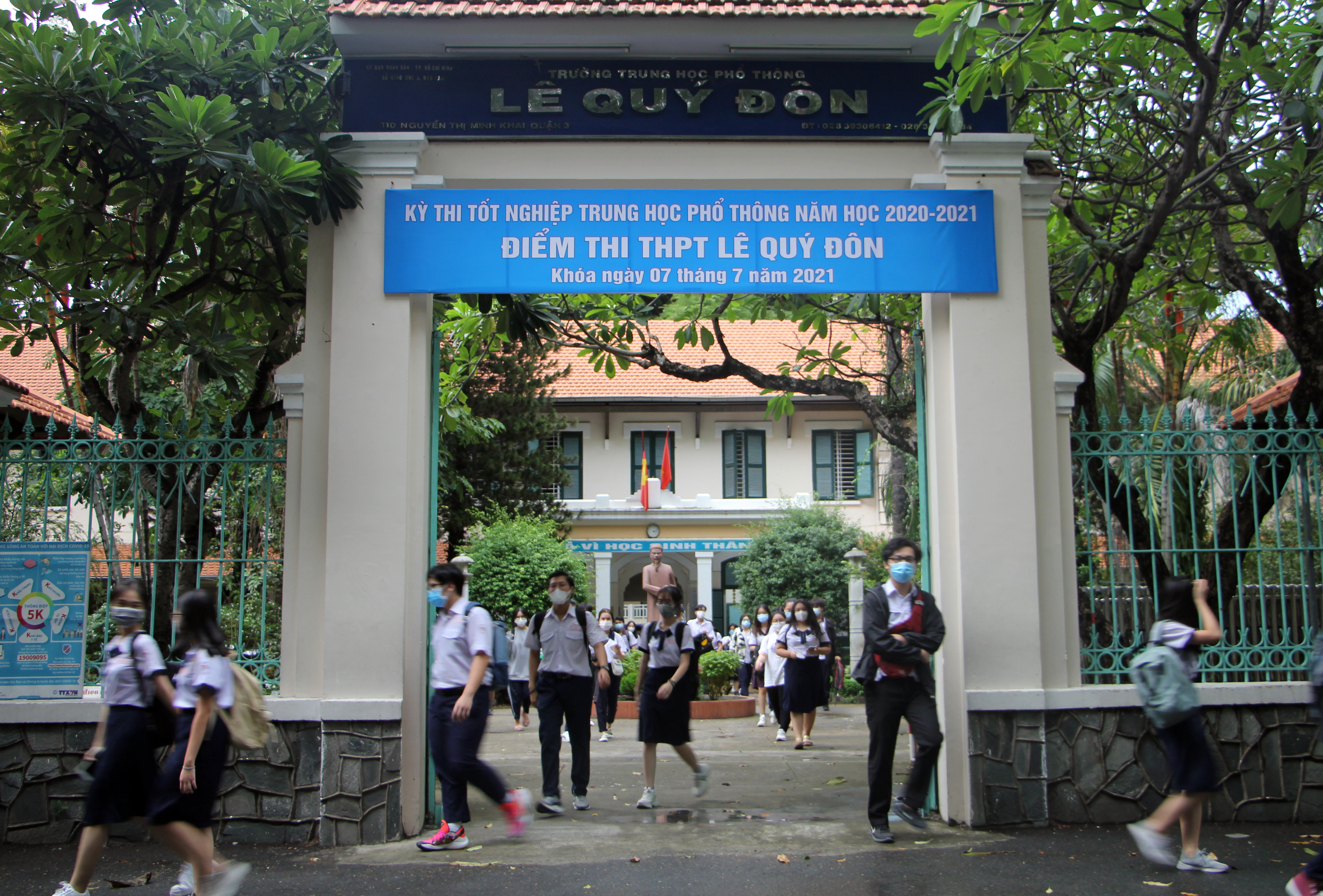 Trước đó, sáng cùng ngày, tại một số điểm thi trên địa bàn đã có phát sinh liên quan đến dịch bệnh Covid-19, tại Trường THCS Đặng Trần Côn (Tân Phú), Trường THPT Lê Thánh Tôn (Quận 7) và Trường THPT Lê Quý Đôn (Quận 3).