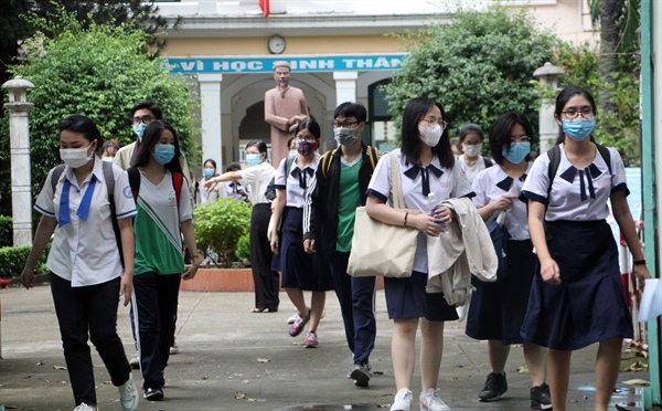 Trong ngày thi đầu tiên, TP.HCM phát sinh nhiều trường hợp liên quan đến Covid-19. Trong ảnh: Thí sinh hoàn thành môn thi Toán chiều 7.7