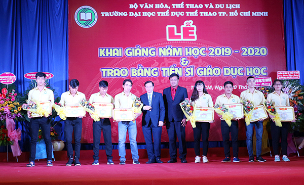 Tại lễ khai giảng, Trường ĐH Thể dục thể thao TP.HCM đã trao bằng tốt nghiệp cho 9 tân tiến sĩ ngành Giáo dục học; khen thưởng 14 sinh viên có thành tích xuất sắc trong học tập và rèn luyện.