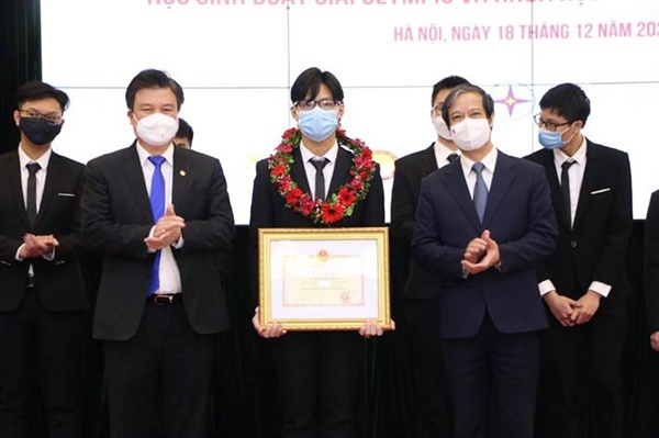 Tại lễ tuyên dương, 14 học sinh, 21 thầy cô giáo và 5 tập thể có thành tích xuất sắc, có đóng góp quan trọng tại các kỳ thi Olympic và Khoa học kỹ thuật quốc tế năm 2021 đã được nhận Bằng khen của Bộ trưởng Bộ GD&ĐT. Trung ương Đoàn TNCSHCM trao Bằng khen cho 28 học sinh, đoàn viên có thành tích xuất sắc.