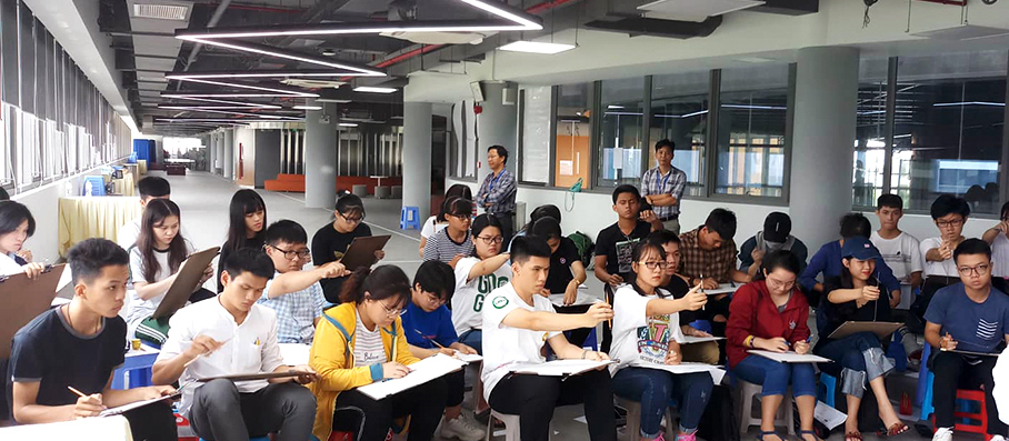 Thí sinh thi năng khiếu vẽ tại Trường ĐH Văn Lang năm 2020