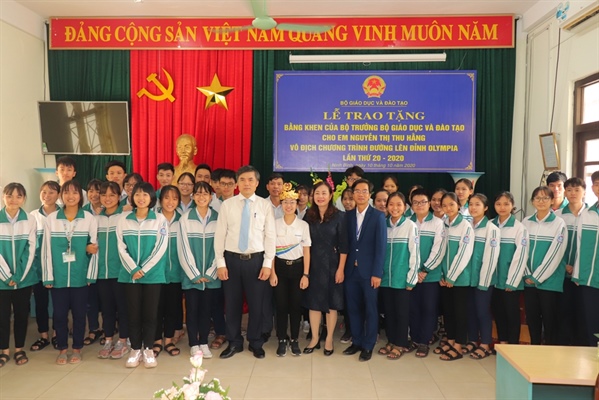 Đại diện Bộ GD&ĐT, ông Bùi Văn Linh cho biết: “Thành tích của em Hằng là niềm vinh dự không chỉ của gia đình, nhà trường, của ngành Giáo dục mà còn cả người dân Ninh Bình. Với truyền thống bề dày lịch sử của con người Ninh Bình, mong rằng các thầy cô sẽ lồng ghép ý thức rèn luyện và tình yêu quê hương đất nước, niềm tự hào dân tộc trong các chuyên đề của nhà trường”. Ông Bùi Văn Linh mong rằng, thành tích em Hằng đạt được sẽ là động lực để các em học sinh noi gương tinh thần học tập, nỗ lực hơn trong các hoạt động, tiếp bước truyền thống của nhà trường để đạt được ước mơ sau này.