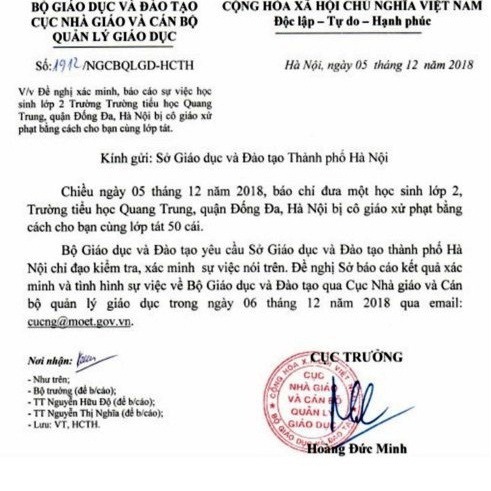 Cục Nhà giáo và Cán bộ quản lý giáo dục yêu cầu xác minh vụ việc