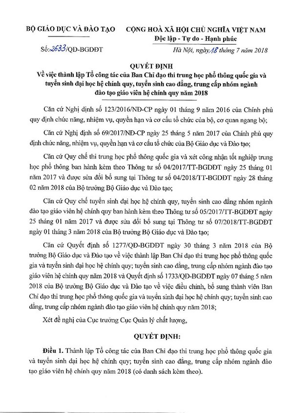 Trước đó, vào chiều qua 18.7, Bộ GD&ĐT đã có 2 quyết định thành lập 2 tổ công tác xác minh dấu hiệu bất thường trong điểm thi THPT quốc gia của hai tỉnh Lạng Sơn và Sơn La. Quyết định nêu rõ, hai tổ công tác có nhiệm vụ giúp Bộ trưởng Bộ GD&ĐT chỉ đạo việc xác minh dấu hiệu bất thường về kết quả thi tại Sở GD&ĐT Lạng Sơn và Sơn La trong kỳ thi THPT quốc gia 2018.