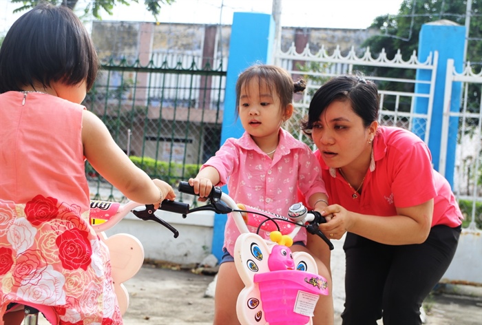 Hằng ngày, cứ đúng 6 giờ 30 phút, chị Lê Thị Mỹ Châu (phường Cam Linh, TP Cam Ranh) công nhân Công ty TNHH Mãi Tín bắt đầu vào ca. Theo chân chị Châu là cậu con trai hơn 2 tuổi cũng lẫm chẫm bước về phía lớp học mà cậu đã quen thuộc. Ngôi trường khang trang, sạch đẹp nằm trong khuôn viên công ty là nơi chăm sóc và nuôi dạy các cháu từ 18-36 tháng tuổi là con của công nhân công ty. Chị Châu chia sẻ: “Tôi rất mừng và an tâm khi công ty đầu tư xây dựng trường học cho con em chúng tôi. Trước đây, nhiều chị em khi sinh con luôn lo lắng về nơi gửi con. Đã thế, vì thu nhập của chúng tôi còn thấp nên gửi ngoài chi phí cao mà nhiều lo lắng. Do đó, công ty xây trường mẫu giáo đã giúp chúng tôi vừa tiết kiệm chi phí vừa an tâm làm việc, gắn bó lâu dài với công ty”.