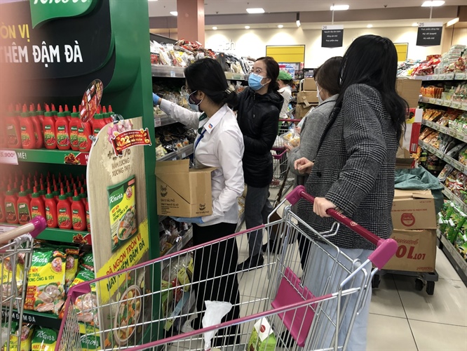 Nhân viên siêu thị hoạt động hết công suất để phục vụ nhu cầu mua sắm của người dân